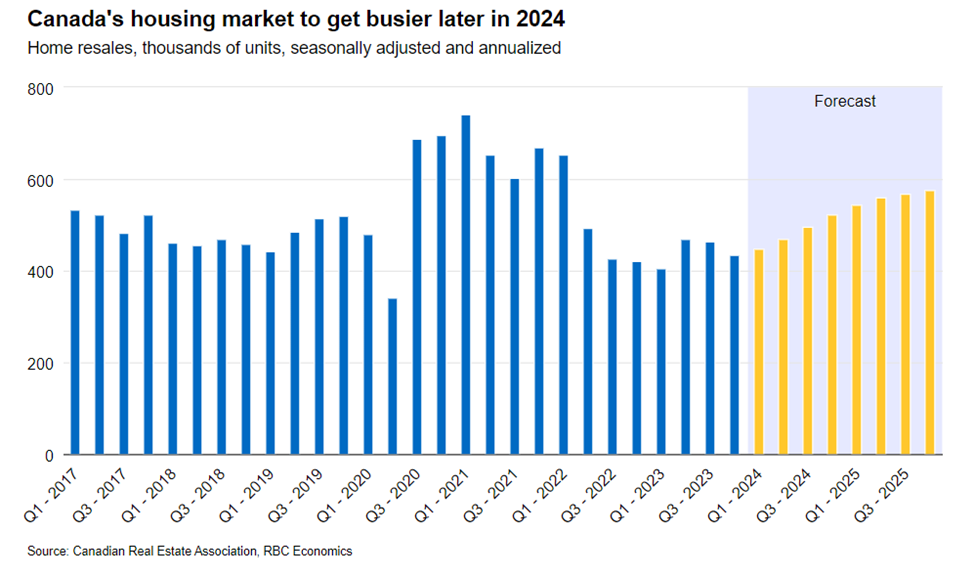 As interest rates begin to decline in the second half of 2024, activity in the housing market is expected to recover. The market projects an annual recovery of 9.2% in home resale in Canada, reaching 484,400 by 2024, with a partial reversal of 25.1% in 2022 and 11.1% in 2023. However, that growth this will be done gradually, so that liquidity becomes easier It will continue to control the overall capacity of the market.