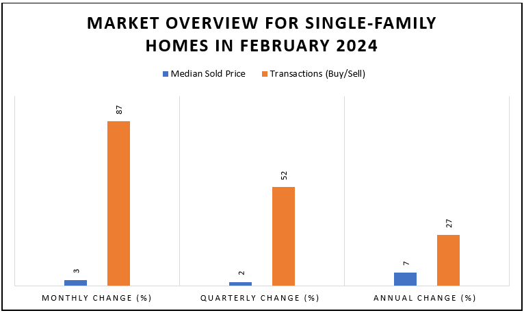 The average home selling price in Montreal’s housing market has been reached $579,721 in February 2024. It represents an 8.3% growth over the previous year. On the other hand, it also shows a 1.7% increase from the previous month (Source 2). Notably, this average price is 58% higher than the average price five years ago in February 2019. Meanwhile, 3,843 homes changed their owners. It signaled a 28.3% year-over-year increase in transactions.